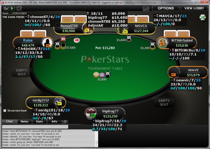 Poker Stars $5.00+$0.50 No Limit Hold'em Tournament - t3200/t6400 Blinds + t800 - 6 players -