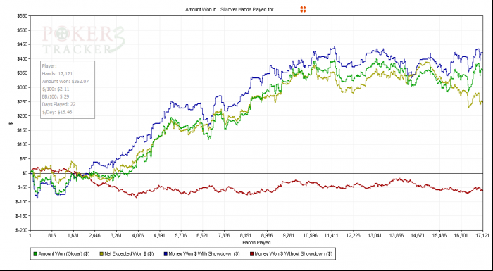первоначально в последней раздаче на ривере стояло , а на самом деле было . Исправил. При постинге была ошибка.