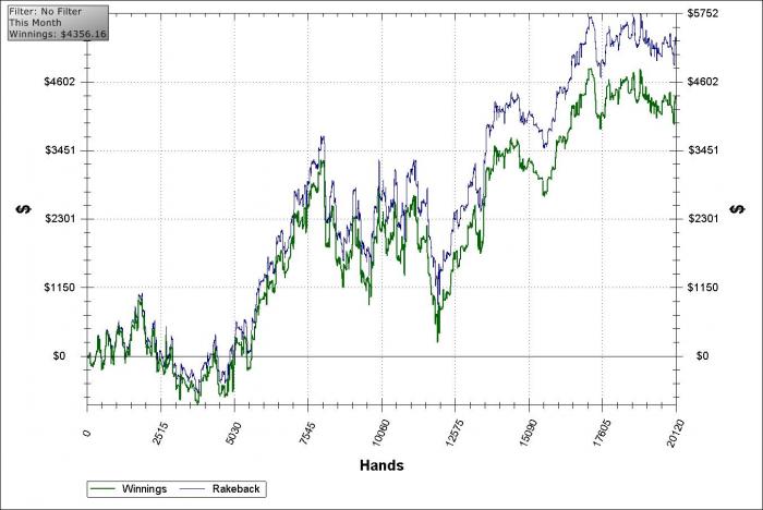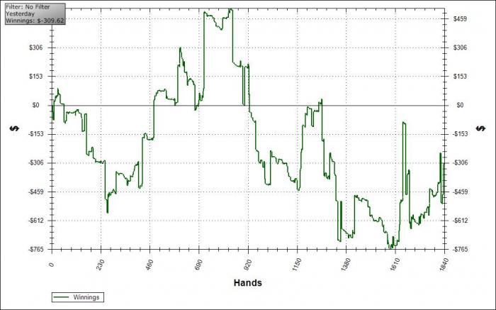 1) играть много в месяц - хорошо; 2) играть длинные сессии не очень ); 3) всё-таки зависеть под конец месяца от количества рук - тупость, игра не идёт, агрессия падает, флопы не срастаются, а ты продолжаешь игру; 4) добавив количество столов с 4 до 6 у меня падает пфр и пока я ничего с этим сделать не могу, не везде успеваю, и решаю подсознательно, что будет более выгодная рука для рейза; 5) хорошо, что я все эти эксперименты в основном провёл на лимите ниже, ошибок много, так что к постоянной игре на нл400 подошёл с неплохим багажом знаний; 6) ЕВ вернул мне всё, что должен был в предыдущем месяце, что не может не радовать; 7) разбора раздач почти не было, ибо некогда и сил нет - это плохо; 8) думаю для меня 20-30к рук в месяц оптимальный показатель, учитывая, что ещё очень много других дел. Так что к ним я и буду стремиться каждый месяц; 9) играл только днём; 10) днём игры на нл400 практически нет, стало быть, как лето и осень закончатся, придётся перейти на ночной режим, это меня не радует. К тому же не буду кататься на велике. Разве что на домашнем тренажёре для шоссейников.