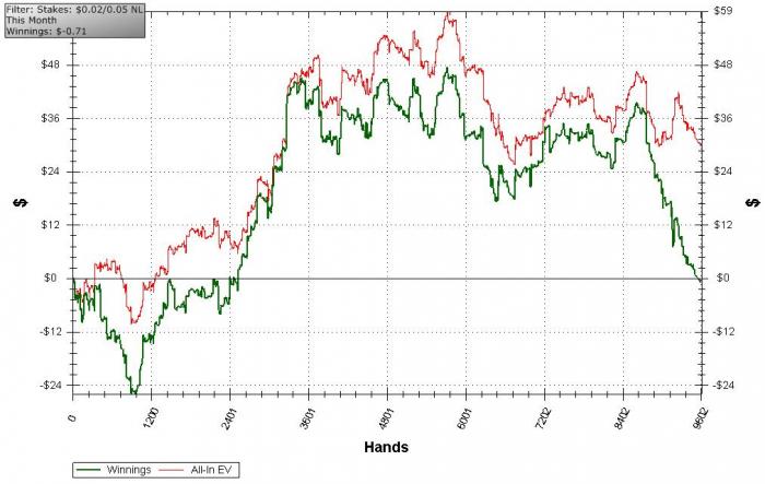 Выяснилось, что у меня есть большая проблема со временем на игру. Работа, спорт, встречи с друзьями и 5000 рук в неделю - заоблачные цифры. Думаю, многих людей, чьим хобби стал покер, посещала мысль о том, какую часть себя отдать игре. Покер справедлив и вернет сполна тем, кто отдается ему. Насколько я отдаюсь покеру, видно на графике и по частоте и содержанию постов в дневнике. А насколько отдаваться? Пока еще однозначного ответа не нашлось, но в любом случае хотелось бы играть больше.
