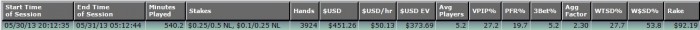 ФТП временно прекратил работу. Там замерзло то, что осталось от моего банкролла. Копейки, что-то около 200$. Открыл старзы и обнаружил там немного денег на своем аккаунте. Большие суммы держать на счетах покеррумов, думаю, все еще рисково. Пожалуй, пришла пора вернуться в кеш. Начал с NL5. Буду играть этот лимит, пока не побью его или пока не залью крохотный БР. Итак, вот, что имеем сегодня: лимит встретил вполне дружелюбно даже учитывая небольшой недобор. Хорошо, что появился повод продолжить ведение дневника. Как и прежде, буду выкладывать интересные, странные, сумасшедшие и показавшимися мне сложными раздачи. Буду рад увидеть комментарии и советы. Цель - побить NL50, а там посмотрим, куда двигаться дальше.