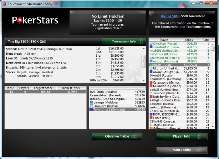Poker Stars $30+$3 No Limit Hold'em Tournament - t10/t20 Blinds - 9 players -
