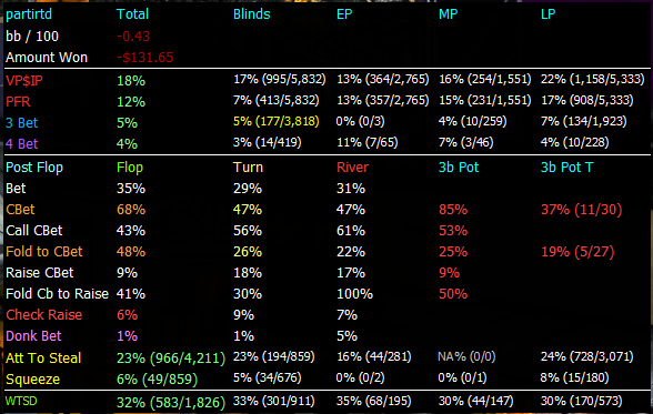 River: ($211.20, 2 players) UTG shows (Full House, Sixes full of Eights)