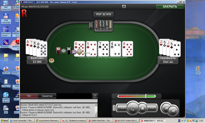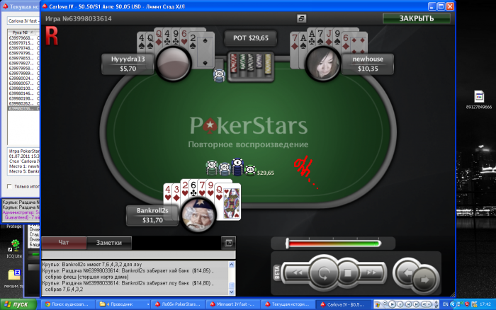 что касается везения- то везет немножко готовил пиццу, решил быстренько поиграть чуток в стад хай лоу 0.5/1 сел за стол против очень сильного китайского регуляра и неизвестного оппонента в результате 4 ой раздачей выйграл 28 БИГ БЕТОВ!