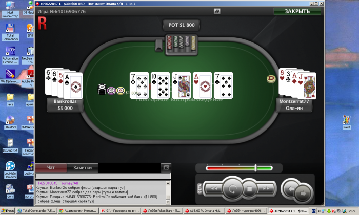 выставились на флопе. 60 баксов омаха хай лоу пот лимит. опп жесточайший регуляр! смысл раздачи:я бет, он рейз, я 3бет. он колл. флоп он чек я олл ин! жесткий ха-жесткая раздача