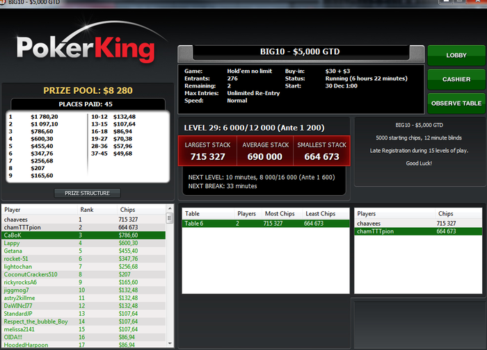 9 players post ante of 0.13 BB, SB posts SB 0.5 BB, BB posts BB 1 BB