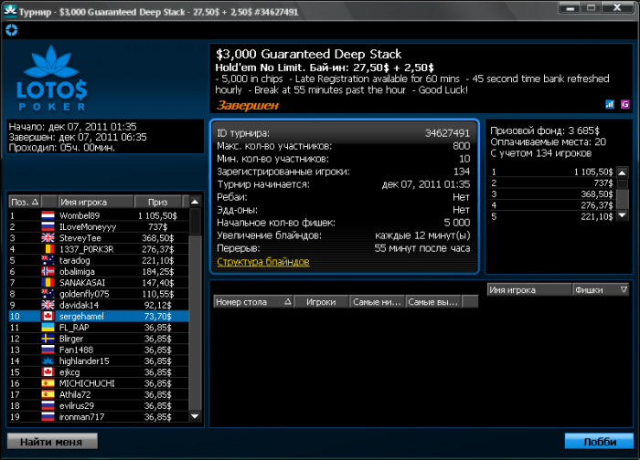 мда Забросила дневничек свой( Делала перерыв на неделю(бед биты за бед битами) Сегодня зарегистрировалась на покер руме LOTOS Не скажу, что особо нравится интерфейс ,но сойдет. Cделала первый депозит в 50 долларов Зашла в турнир по 30$ 3000Gtd Прошла на финальный стол Стек ТоП2 Удачи мне=)