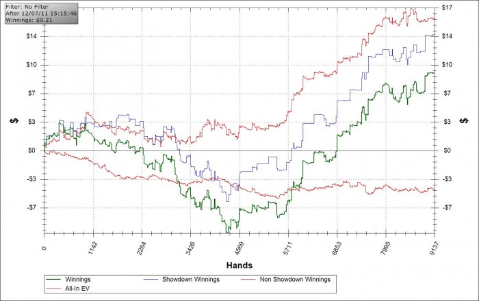 на предыдущий странице график на 10к рук это и есть конец предыдущий недели) Решил общий график выкладывать каждые 10к рук.Щас показывает 7.93\100бб но думаю это не точный результат, так как играются столы на три валюты.