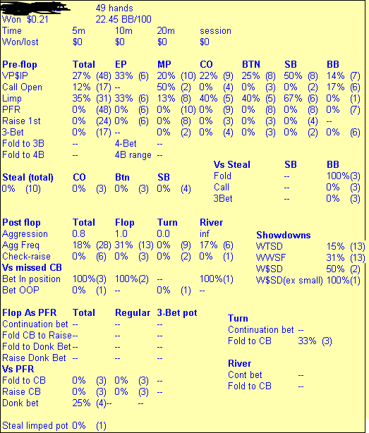 Не знаю как можно вообще зарабатывать на этом лимите, Если только на вот таких вот полуреговых фишах (не ожидал такого от такого на первый взгляд хорошего тайтового рега (вскрывал исключительно только против АJ QQ-AA):
