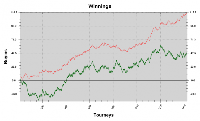 Я с начала года сыграл 3.400 турниров. На своем графике могу тебе найти отрезки по 500 турниров: один можно вешать на стенку и молиться на него, а вторым пугать детей.