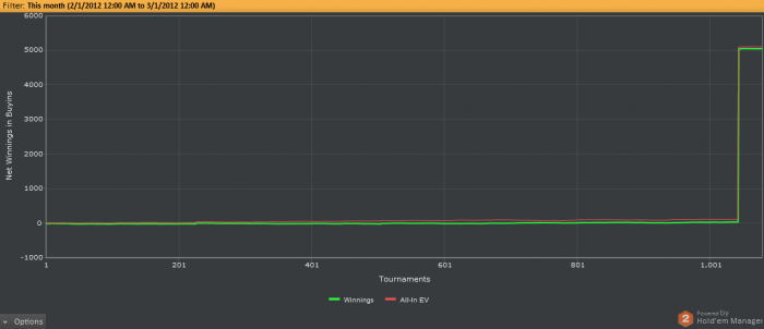 С платиной в феврале уже ничего не выйдет, к сожалению. Набивать платину в ущерб игре я не собираюсь - оно того не стоит. Слишком много халтурил в феврале. Шутауты играю для интереса. Мне нужно постоянное соперничество, поэтому не идет кэш, например. Тупо гриндить одну игру надоест быстро, а покер для меня не только заработок(небольшой пока что), но он еще и приносит радость и удовольствие. :) Долларовые играю, пока на евро игры нет. А так нас и тут неплохо кормят.