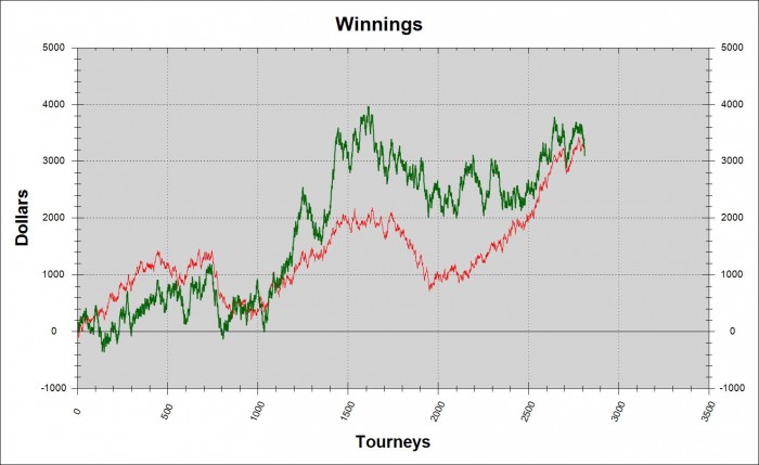 Времени конечно дохера уходит , сёдня 9 часов . Катаю одновременно 2 стола . До этого самая длиная месячная дистанцию была 6300 ХА , так что этот месяц должен стать рекордным , надеюсь не только по кол-ву турниров , но и по профиту . Надо тольку ауру подправить и