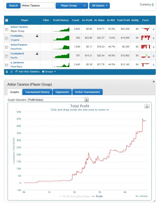 Общая прибыль в МТТ: ~45К$. Общая дистанция: ~5000 игр. Суммарная статистика по всем никам: