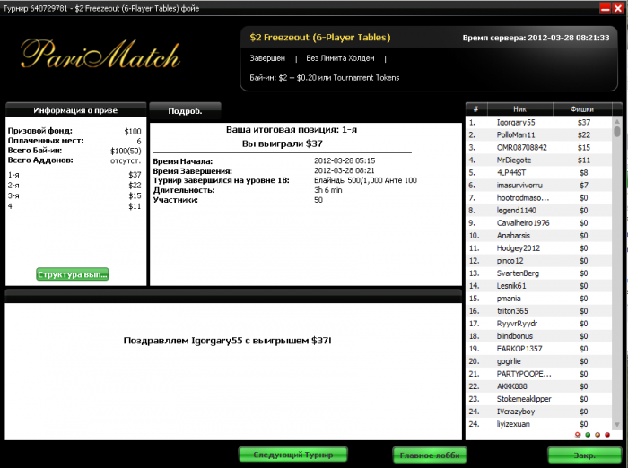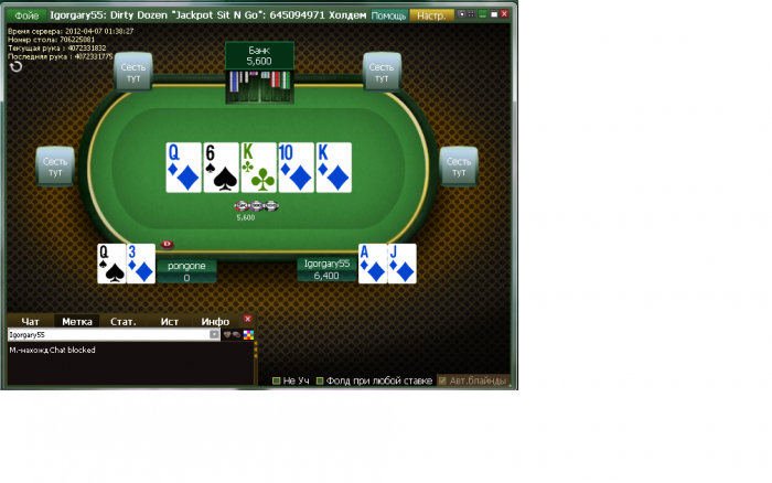 IPoker Network No Limit Hold'em Tournament - t10.00/t20.00 Blinds - 5 players -