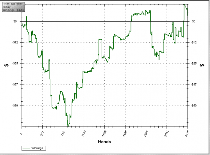 это немного напрягает, учитывая, что я полез на нл10 с 27ю би, сейчас 30би, но хотелось бы выиграть поскорей 10-20би, чтобы можно было играть спокойно, не опасаясь, что если сессия пройдет неудачно, то придется спускаться на нл5.