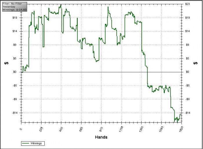 вчера чуть не тильтанул. Начал с хорошего плюса, а затем все слил и ушел в минус. Продолжил играть, но почувствовал, что растет раздражение, и решил остановиться.
