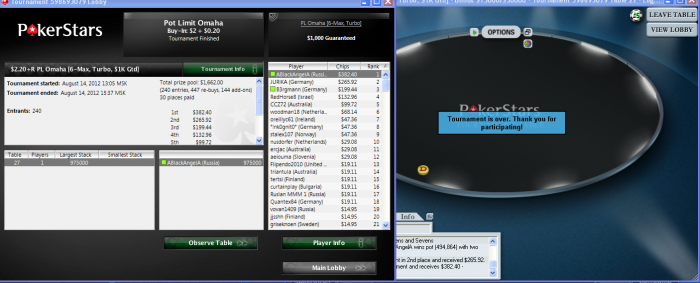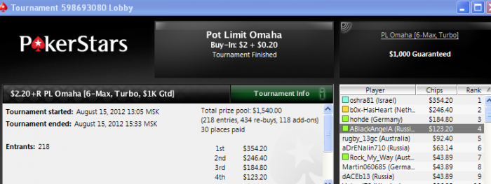 И после неудовлетворенных амбиций чиплидера в топ-4..Pot Limit Omaha Tournament