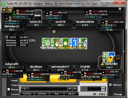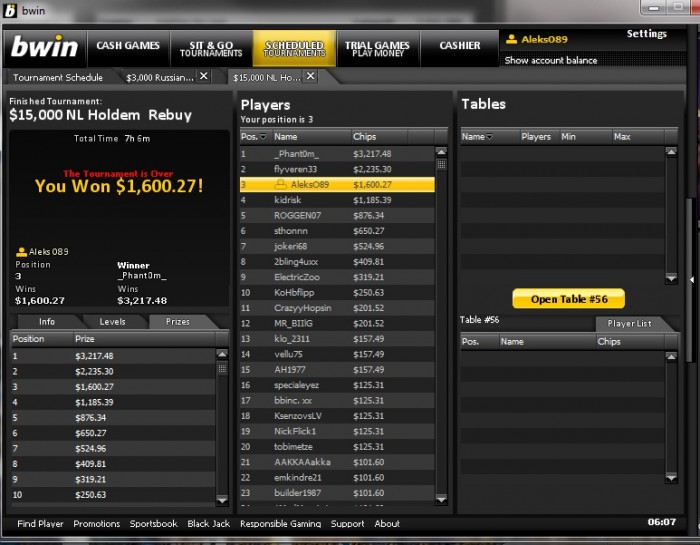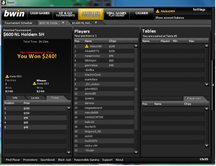 а так пятый день катаю, пока не очень удачно, вчера баблов наловил штуки 4, ну ниче, прорвемся, вспомнил, что такое катать 12 столов, ито все по 6 катал, когда нерегулярно, а тут весело, скоро попрет, чувствую себя уверенно за столами