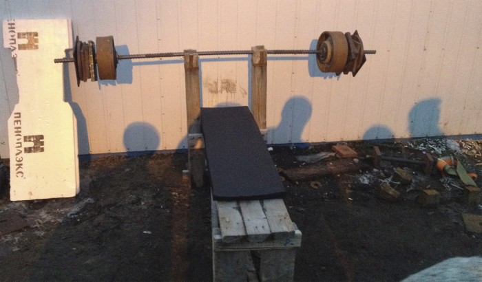 Весь спорт инвентарь выглядел именно так. Занятия проходили на свежем воздухе, в холод, дождь, снег, с комарами, оводами и мошками за компанию)). Брутальности просто нет предела! Но мы занимались, занимались почти каждый вечер и нам было плевать на все трудности, ведь была цель: Стать лучше!. И мне кажется лично у меня это получилось.