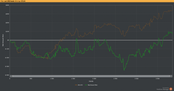 Где же на этом графике я закрыл клиент и открыл сново - догадаться не сложно - 2,7К рука(это граф за весь день)