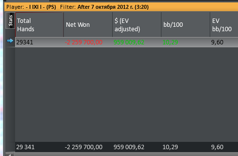 Самое плохое в этой статистике не недодача в 2 млн, а так как сдают. За последние 20 дней слишком много кулеров, попросту вляпываюсь в натсы на всех уровнях блайндов, из-за чего участились дни когда у меня ев бб/100 в минусе, либо ев по фишкам. Это констатация факта, на такую чушь я не жалуюсь