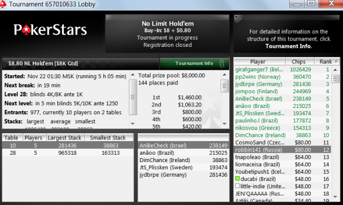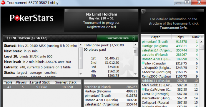 За 6-е число вышло 260 матчей, к сожалению концовку смазал не хило. Немного замазался да и ещё недобор включили. В общем просел на 16 БИ от сегодняшней высшей точки. Мельком глянул раздачи, сыграл несколько матчей на семёрках и вроде нашел несколько серъезных ошибок. С рыбой(настоящей жирной рыбой) в годмоде решил не играть больше 2-х матчей, ибо деклайнят как только проигрывают пару БИ.
