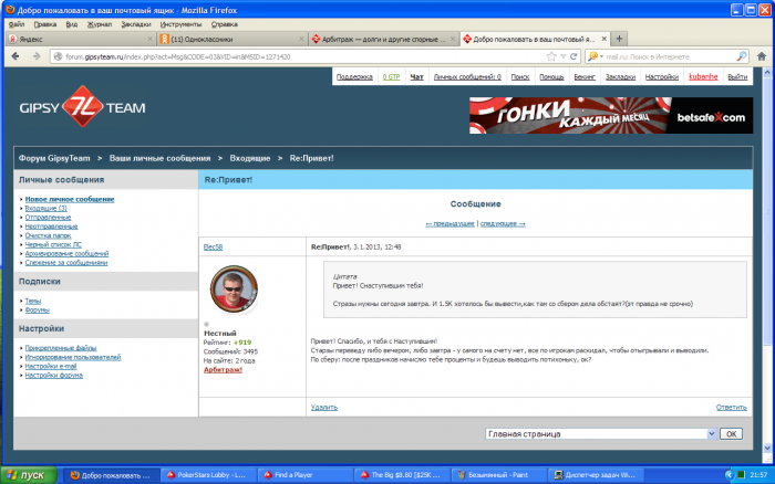 Повторяю, я его не принял, приму только тогда, когда Элек позакрывает все долги обменника, некоторые долги обменника будут закрыты мной в счет платы за сайт, о долге кубанхе мне Элек ничего не говорил, т.к. Это егл личный долг, кубанхе тоже не оспаривает, что это личный долг Элека, но почему-то пытается получить его с будущего владельца сайта только на основании того, что в данный момент этот долг записан на его счет на сайте только с целью технического вывода.