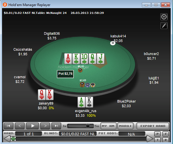 Hero mucked and won $0.94 ($0.48 net)