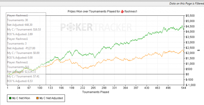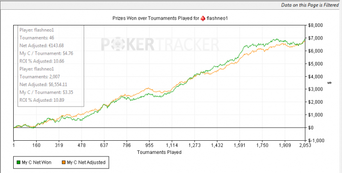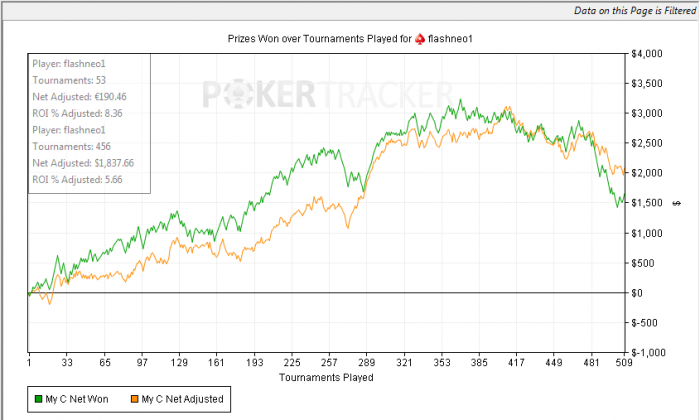 А если серьезно то это обычная просадка. Не 100% же тащить турниров, а всего 56-58%... Да и благодаря таким просадкам фиши и играют в покер, так что мы еще благодарны должны быть диспе за стрики))