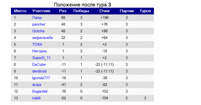 Все таки система в турнирах не очень . Лидера в конце очень не реально догнать. Получается если ты даже сильный игрок. Но тебе не попадались халявки (слабые игроки или те кто зарегился, но не играл), то у тебя нет шансов занять первое место. Все равно победит другой кому повезло с соперниками... Можно даже выиграть все свои матчи, но не занять призовое место.. Может присуждать не сами куши, а балы зависящие от кушей например.. А так спасибо, еще побольше бы их турниров, и разных...