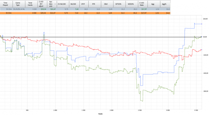 Я вчера проиграл 3 раза с 91% эквити за 9к рук, получил недобор 6би.