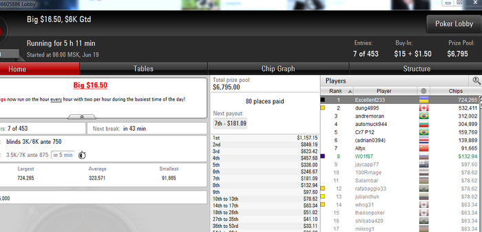 и опять не доехал в 44 6максе, опять чиповал в 3 максе, но проиграл подряд два выставления, и потом почти все постфлоп: