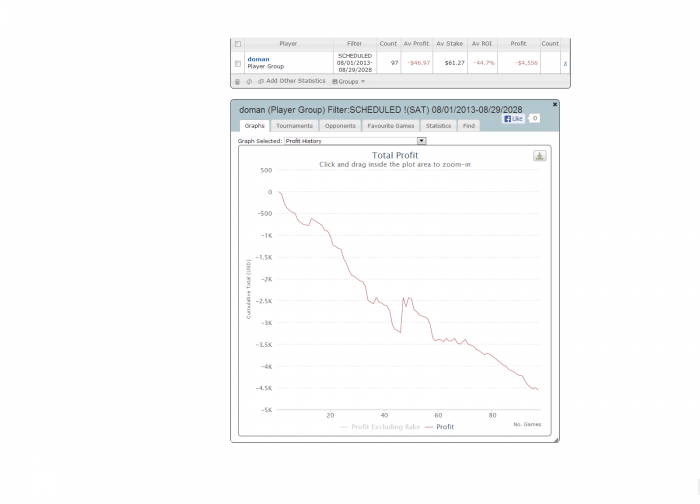 Вообщем изрядно в этом месяце меня заебали эти качели. недоборы и отсутствие профита. Самое главное, что на данный момент в августе пожалуй впервые такое, что у меня за месяц нескладывается ни в одном формате - в ХА копеечный плюс с огромным недобором для этой дистанции, в МТТ жесткий минус и ниодного заноса, да даже в сателлитах минус, пиздец просто слов нет. Седня все-таки сыграл 109+р сат на мейн вкупа за 5к. ЛОЛ просмотрел реплеер, по фишкам недобор в 12к (стартовые стеки 1500, аддон 2000), выставился 6 раз Оллин префлоп, вьебал 5 раз, при том, что почти все они были монеты, вот так улетели 500 дол вникуда. Надеюсь, в ХА пойдет перебор и очень надеюсь затащить дорогое МТТ в ближайший месяц