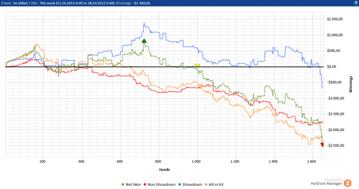 В такие дни, как сейчас, когда заливаешь по 25БИ за неделю, начинаешь усиленно работать над игрой. Смотреть ВОДы, разбирать раздачи, тщательней селектить. НО эти меры не дают сиюминутный результат и появляется вопрос, КАКОГО ХУЯ, ты ленивое животное, почему я не делал этого раньше? Ведь у меня не было высоких доходов в покере, не было даже среднего дохода от покера. Был очень маленький доход, который позволяет мне жить не тужить, иногда ездить в интересные места, гулять и т.п.. Вот такая вот ловушка в которой я просидел целый год. Попал в зону комфорта.