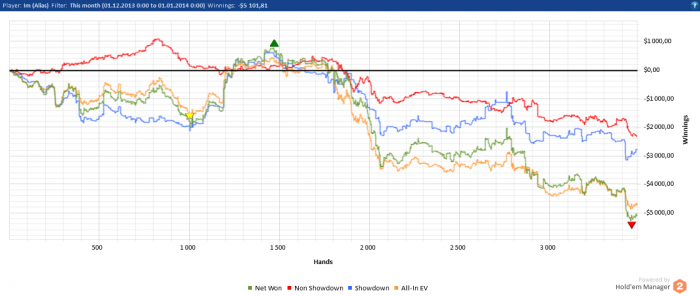 Раз уж у меня есть блог, то поставлю себе тут цель. Каждую неделю, за исключением тех в которые я не за компом, уделять максимум времени покерной теории в любых её формах, чтение блогов не в счёт. Хотя бы 12часов. Даже не знаю много это или мало, но явно больше, чем сейчас. Внимательно следить за состоянием, в котором я играю. Если этого не произойдёт до нового года, то придётся сказать покеру: «Давай, до свиданья!!!».