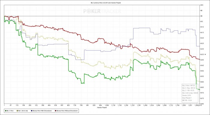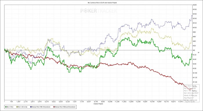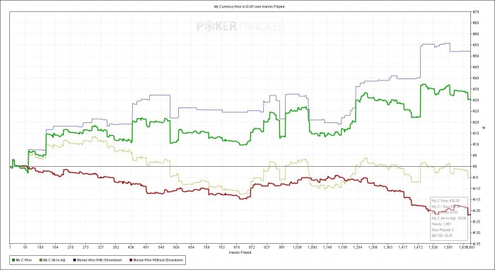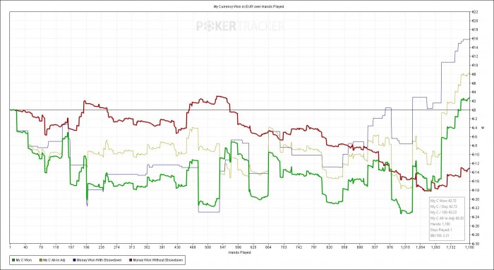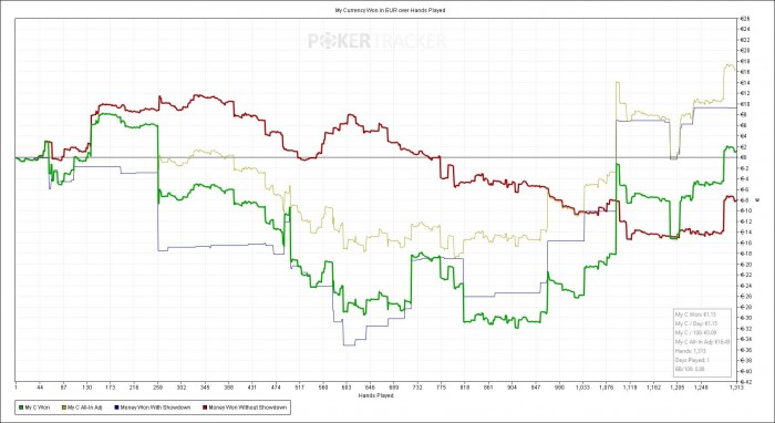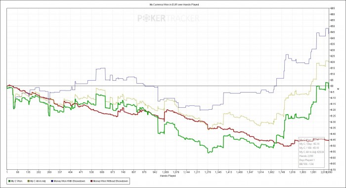 Еще одна хорошая сессия после 2 дней отдыха. Я не вкладываюсь по запланированной дистанции, но качество игры значительно улучшилось. Всетаки отдых и отвлечение от покера дают свои плюсы.