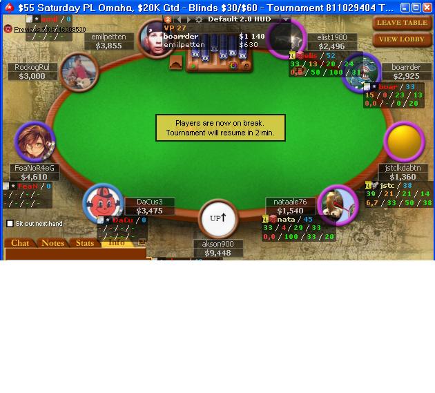 Poker Stars $10+$1 Pot Limit Omaha Hi Tournament - t125/t250 Blinds - 8 players