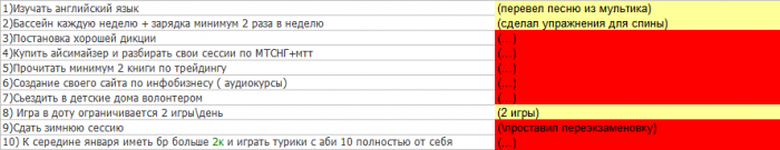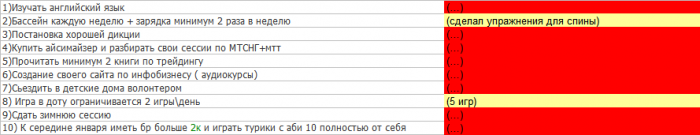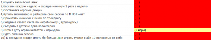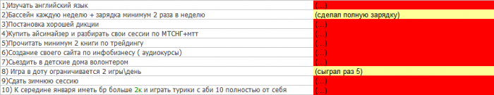 Кмк твоя затея обречена на неудачу по той простой причине, что в твоем списке 10 дел имеющих равный приоритет, успевать делать их ежедневно будет проблематично. Может быть стоит попробовать выбрать 2-3 дела, но которые нужно делать ежедневно и следить в первую очередь за их выполнением, а уже после выполнения оных поставить себе цель выполнить обязательно 1 дело на выбор из второй группы приоритета?