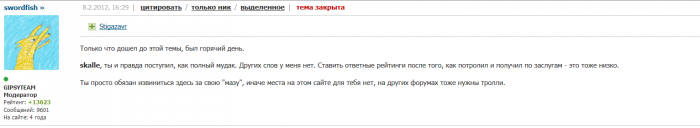 А Kintara не раздумывая за " мудака" в СВОЕМ ДНЕВНИКЕ сразу в бан.