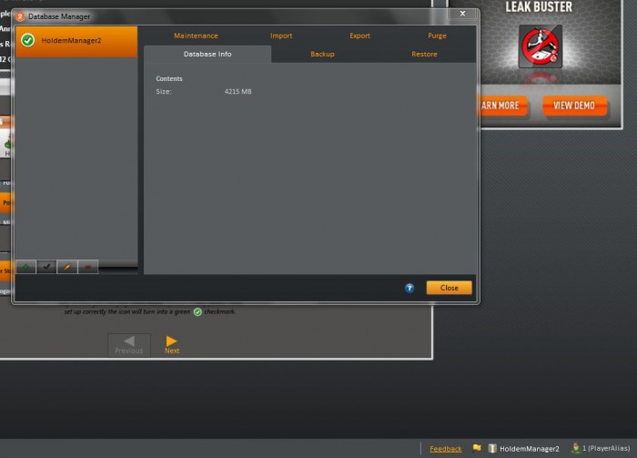 В ХМ на старом компе нажимаешь на название базы (на картинке HoldemManager2) - открывается окно. В окне выбираешь вкладку Backup, в которой выбираешь путь для сохранения и название резервного файла. Потом этот файл переносишь на новый комп и в ХМ нажимаешь на название базы и в открывшемся окне выбираешь вкладку Restore, в которой указываешь путь к резервному файлу. И ждешь.