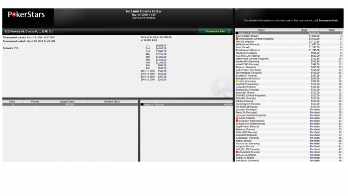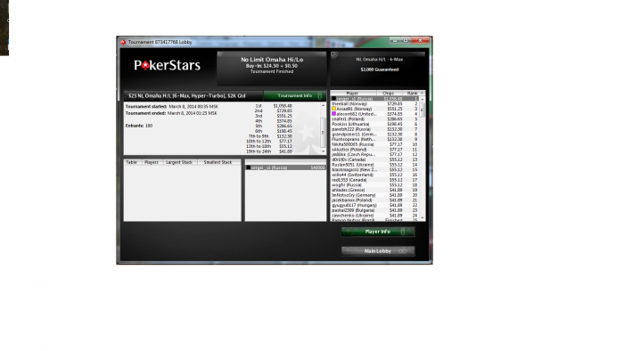 Откат, как всегда накрыл на самом высоком лимите, в принципе на 500-х кроме шведа-кэшевика и 2 рус. оппов поле вполне сладкое. Теперь буду играть в основном 60-100, экшен есть, что не может не радовать. Бетховен временно перестал со мной играть, а это значит, что на 200-х тухляк полный, последние 2 сессии всего один матч(((.