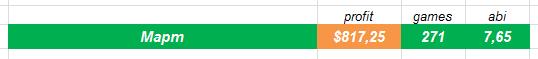 В целом, своей игрой я очень не доволен, было много ошибок, много тильта, разбором практически не занимался! Огромное число турниров было залито по причине обидных переездов. Конкретно когда вылетаешь в в нескольких дорогих для себя турнирах, а оставшийся балласт уже и не хочется доигрывать! С этим буду бороться!