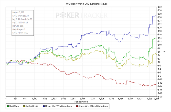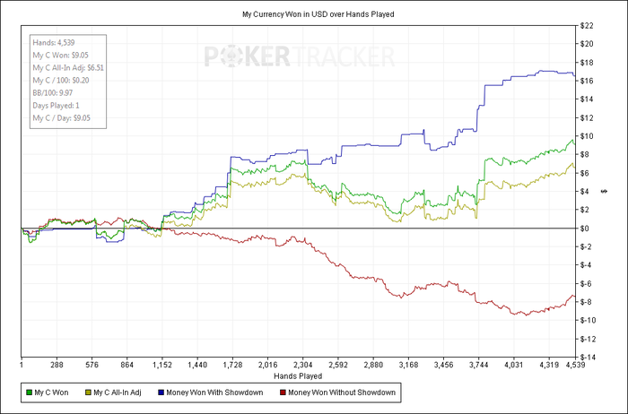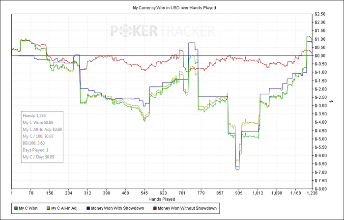 Но я не уверен что все закончится на этих 100к. Так как профит меньше чем я ожидал, а мне нужны деньги на семинар от жана и на нудлера, и на банкрол для нл5. Так что доиграю 100к а там посмотрим. А переходить на нл5 без подготовки наверное не буду, так как делал єто уже много раз и ни разу не получилось