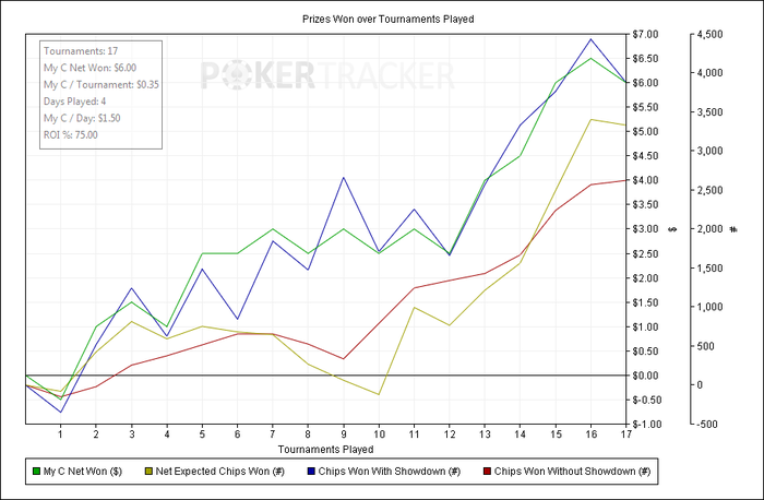В турнирах не шарю, когда то давно прочел первый том харингтона и немного посидел в програме ICM trainer или чтото в етом роде уже не помню, но мне показалось поле вопиюще слабое, хотя я и ненавижу турниры. Но акцыя заставила поиграть, даже несколько доларов мне не помешает. А вот после спинов вернулся на нл2, и начал пихать олины со всякими дамами итд, а мне в ответ только АА показывали(хотя я и перетянул 1 раз ), трудно назад перестроиться на этих нитов.