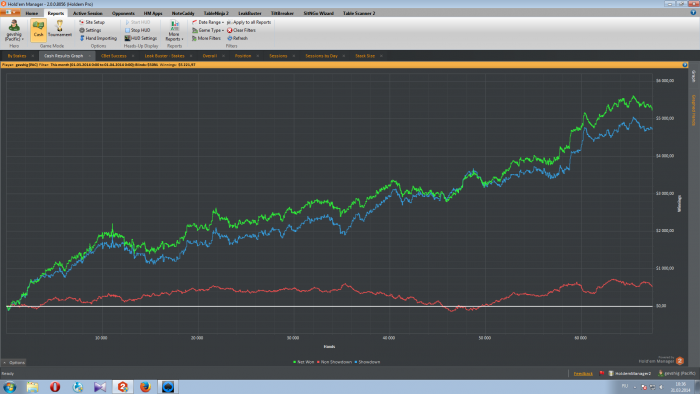 gevshig @ 8.3.2014 да ты прав, значит мы сталкивались за столами, может скажешь какой у тебя ник? Я щас обратно на полтинник решил спуститься, сильных регов за последнее время стало намного больше. Надо более консервативный БРМ для этого лимита.