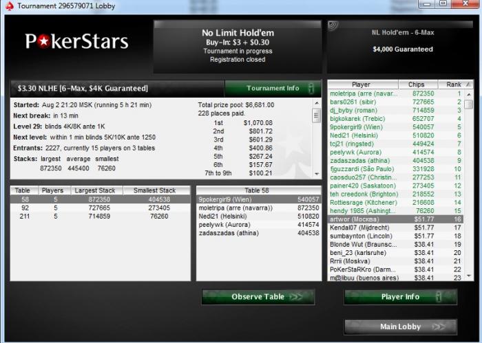 Poker Stars $1.00+$0.10 No Limit Hold'em Tournament - t25/t50 Blinds - 9 players