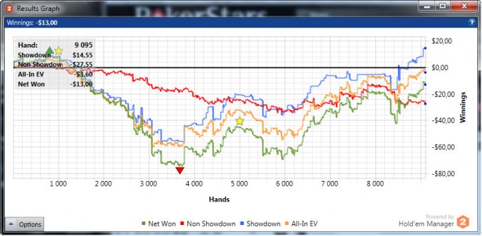 Еще, по поводу БР, я веду оч агрессивный БРМ, 20 БИ, но это потому что вовремя могу слезть ниже и продолжить, если чувствую, что что-то не так. И таких вылазок на 8 столов давно не совершаю, и на ривере себе такого не позволяю. Ну а если ты любишь погонять диспу и играешь так на ривере не случайно, то тебе конечно надо БР поконсервативней.. И тоже не забывать спускаться)