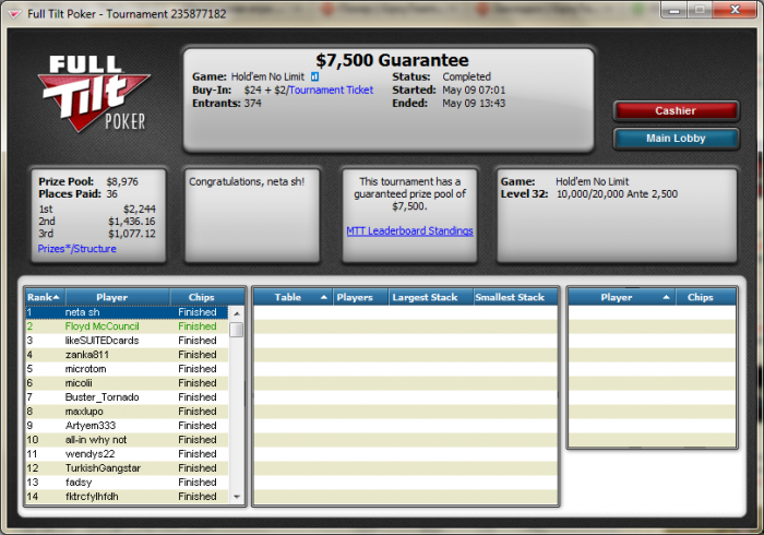 небольшой доезд. Жить стало проще, жить стало веселее. Итого, за апрель удалось сделать всего лишь 2 финалки, одна из которых была успешно доведена до победы, и одну предфиналку в 6максе. Профит есть, но он весьма и весьма скромен.