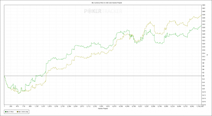 BB: $4.42 (VPIP: 56.25, PFR: 21.88, 3Bet Preflop: 0.00, Hands: 32)