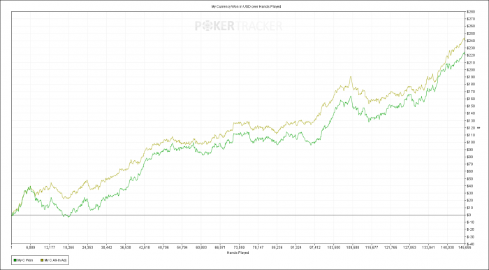 SB: $2.42 (VPIP: 23.24, PFR: 11.97, 3Bet Preflop: 2.00, Hands: 143)